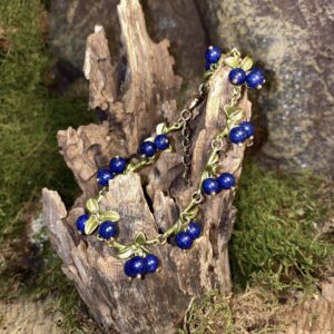 Zvýhodněný set Šumavské borůvčí spojuje náušnice, náramek a náhrdelník do harmonického celku inspirovaného šumavským lesem. Tmavě modré „borůvky“ a jemné zelené lístky vytvářejí přirozený kontrast, který působí klidně, elegantně a nadčasově.