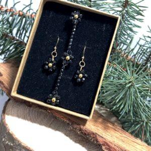 Set Tajemná noc: náušnice a náramek černé Sedmikrásky